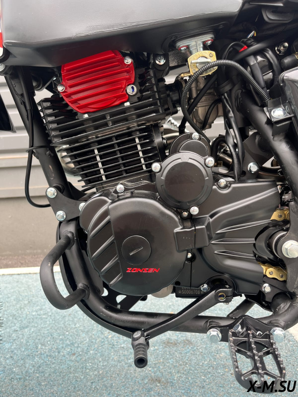 Оснащается Топовым оригинальным ZS 177FMN с высоким крутящим моментом в паре со спортивным карбюратором Nibbi Racing 30 идеально расположен внутри рамы. По сравнению с другими эндуро мотоциклами наклонен назад, это позволило распределить массу и получить лучшую управляемость.